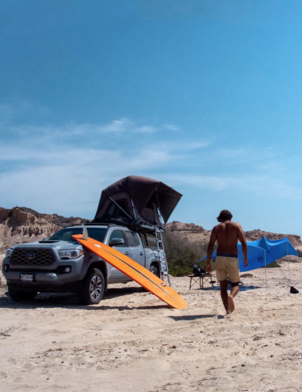 Roof Tent, Shade, Road Shower, Cooler & First Aid and Rescue Kit.