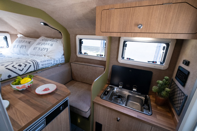 En combinant la cellule principale avec une tente de toit, ce véhicule peut accueillir jusqu’à cinq personnes. Cependant, pour garantir un confort optimal — c’est‑à‑dire que chacun dispose de l’espace nécessaire pour bouger, dormir et profiter — il est recommandé que ce soit deux adultes et trois enfants. Cette configuration permet d’éviter de se sentir à l’étroit et de profiter pleinement de l’intérieur, de la cuisine, de la douche, et des rangements sans compromis sur l’aisance.