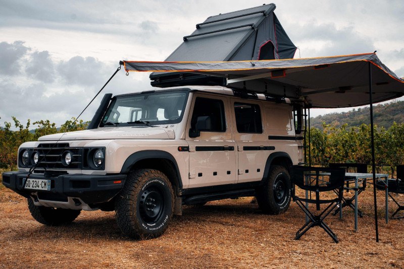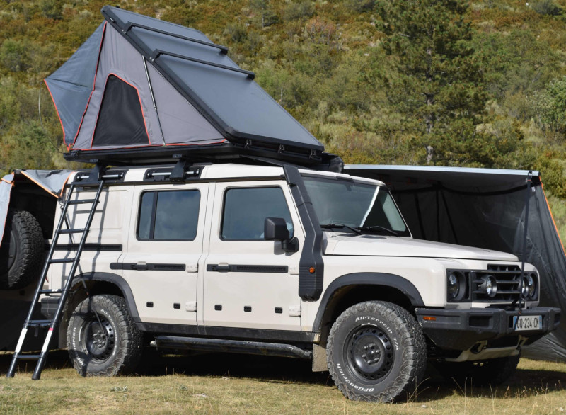 Aménagé pour le voyage, le Grenadier accueille jusqu’à 5 personnes, avec un espace nuit optimisé comprenant un lit double confortable à l’intérieur et une tente de toit pour 2 personnes, idéale pour profiter du spectacle des étoiles. La RaidBox 2.0 transforme l’arrière en véritable camp de base : cuisine équipée (réfrigérateur 30 L, évier, plan de cuisson à gaz), réserve d’eau 30 L, douche extérieure et batterie auxiliaire pour l’autonomie. Des sièges isofix, la climatisation, un système GPS et une interface Bluetooth rendent les trajets quotidiens plaisants et pratiques.