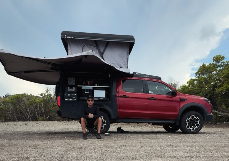 Puissant, confortable et prêt pour l’aventure, ce Ford Ranger Raptor 4x4 est conçu pour partir explorer les pistes tout en conservant un excellent niveau de confort. Ce pick-up spacieux accueille jusqu’à 5 personnes à bord et propose une tente de toit avec matelas (135×190 cm) permettant de dormir à deux facilement en pleine nature. Idéal pour les voyageurs qui souhaitent combiner capacité tout-terrain et équipement de bivouac, il dispose déjà de nombreux équipements pour voyager en autonomie : housse et drap pour le matelas, deux oreillers, auvent pour créer un espace d’ombre, tapis de plage pour deux personnes, glacière rigide, douche de 26 L, bande LED pour l’éclairage, pelle, kit de premiers secours, kit d’assistance routière (compresseur, câbles de démarrage, manomètre, etc.) ainsi qu’un kit de récupération comprenant plaques de désensablement, corde et manilles. Des tentes supplémentaires au sol peuvent également être ajoutées pour accueillir d’autres voyageurs, ce qui en fait un véhicule particulièrement adapté aux escapades en couple, entre amis ou en famille.
