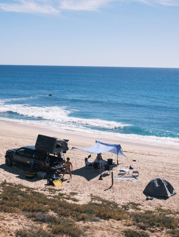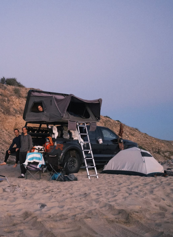 Puissant et conçu pour l’aventure, ce Ford Lobo Raptor 4x4 est un pick-up robuste parfaitement adapté aux voyages sur route comme sur piste. Sa transmission 4×4 automatique et sa conception orientée tout-terrain permettent d’aborder les terrains variés avec confiance, tout en offrant un bon niveau de confort pour les longs trajets. La cabine peut accueillir jusqu’à 5 personnes, tandis que l’installation de bivouac comprend une tente de toit avec matelas (135×190 cm) permettant de dormir à deux. Des tentes supplémentaires au sol peuvent être ajoutées pour accueillir d’autres voyageurs lors des étapes. Le véhicule est équipé pour partir en autonomie avec housse et drap pour le matelas, deux oreillers, auvent pour créer un espace d’ombre, tapis de plage pour deux personnes, glacière rigide, douche de 26 L, bande LED pour l’éclairage, pelle et kit de premiers secours. Pour plus de sécurité et de tranquillité sur les pistes, il dispose également d’un kit d’assistance routière (compresseur, câbles de démarrage, manomètre, etc.) ainsi que d’un kit de récupération comprenant plaques de désensablement, corde et manilles. Un véhicule idéal pour les voyageurs qui recherchent puissance, capacité tout-terrain et confort lors de leurs explorations.