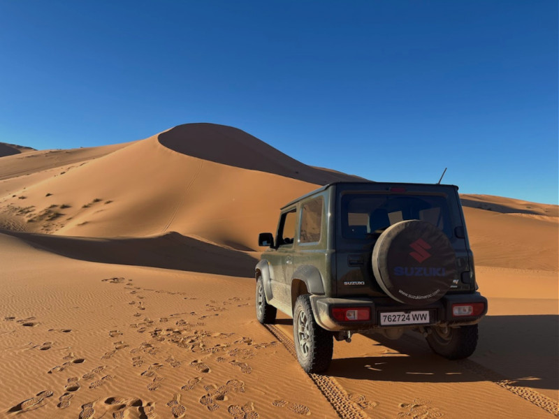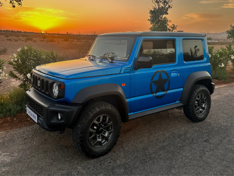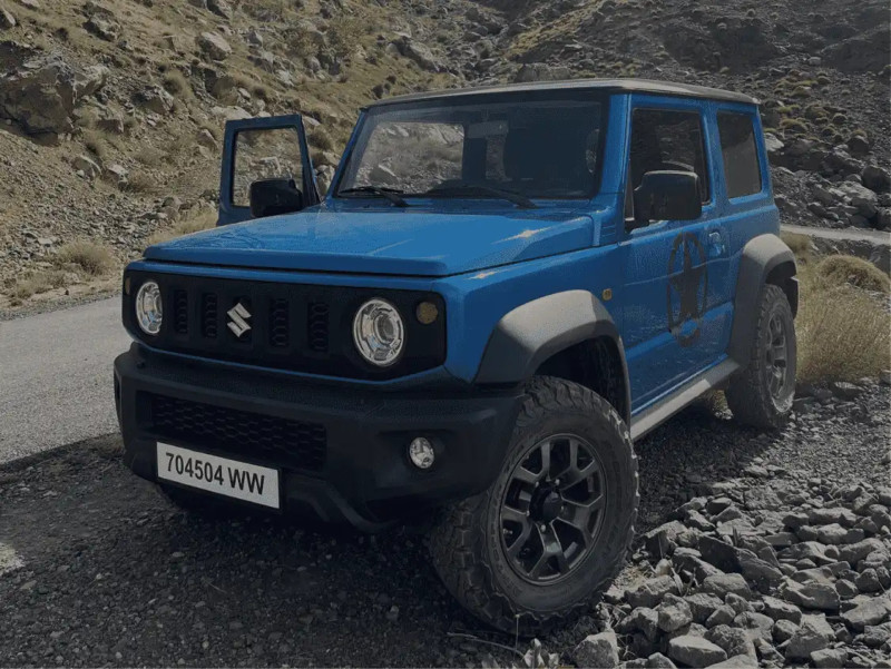 Le Suzuki Jimny 2 Portes est le 4x4 compact par excellence, véritable icône de la conduite tout-terrain légère et du voyage en liberté. Son format réduit et sa silhouette rétro immédiatement reconnaissable en font un véhicule aussi à l'aise dans les ruelles de la médina de Marrakech que sur les pistes de terre environnantes. Ne vous fiez pas à sa taille : avec sa transmission intégrale permanente, ses trains roulants robustes et son remarquable angle de franchissement, le Jimny s'aventure sans difficulté sur les chemins de la Palmeraie, les cols de l'Atlas ou les plateaux rocheux des environs.