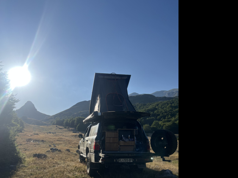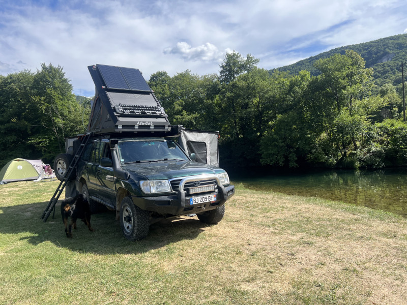 Il possède une tente de toit deux places, un auvent 270°, un frigo de 55L, d'un réservoir d'eau de 50L, d'un chauffe eau instantané, de deux chaises et une table, de tout le matériels nécessaire afin de s'extirper de mauvaises situation, un système électrique qui permet d'être autonome et même d'un grille pain!!